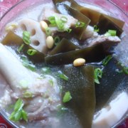带肉棒骨、海带、黄豆、莲藕、姜、葱、花椒、料酒、盐。