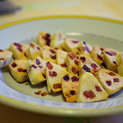 低筋面粉、黄油、糖粉、葡萄干、全蛋液。