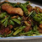 五花肉、湖南辣椒、本地辣椒、大蒜、盐、生抽、老抽。