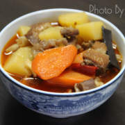 牛腩、土豆、胡萝卜、生姜、大蒜、辣椒壳、八角、桂皮、香叶、油、盐、老抽、白砂糖。