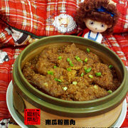冬瓜、瘦肉、水发香菇、荸荠、葱、盐、蒸鱼豉油、芝麻油、料酒、生粉、剁椒。