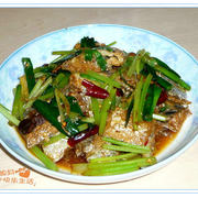 带鱼、芹菜、蒜苗、干辣椒、生姜、豆瓣酱、酱油、盐、鸡精。