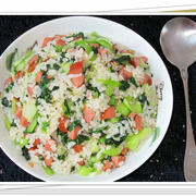 米饭、上海青、脆皮肠、蒜头、盐、味精。