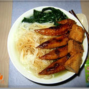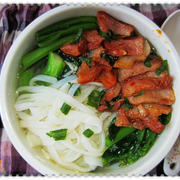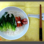 脆皮肠、东莞米粉、上海青、蒜头、盐、鸡精。
