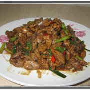 鸡肝、青尖椒、朝天椒、蒜头、芹菜、蒜苗、生姜、葱、黑豆豉、酱油、料酒、盐、鸡精。