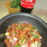 云南小瓜、猪肉、干辣椒、蒜头、酱油、淀粉、盐、鸡精。