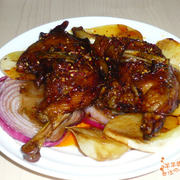 鸡翅、鸡腿、土豆、洋葱、蒜头、葱白、老抽、酱油、蚝油、料酒、盐、鸡精、油辣子、孜然。