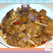 紫茄子、猪肉、蒜头、干辣椒、豆瓣酱、酱油、鸡精。