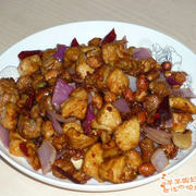 鸡胸肉、猪扒肉、花生、干辣椒、蒜头、洋葱、豆瓣酱、酱油、盐、鸡精。