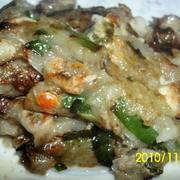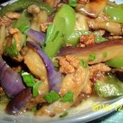 茄子、肉末、青椒、香菇、姜、蒜、葱花、盐、蚝油、老抽。