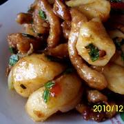 肉 、荸荠、洋葱丝、姜、蒜苖、郫县豆酱、盐、料酒、酱油、老抽、蚝油。