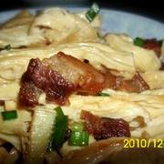 五花肉、腐竹、姜、蒜、葱花、盐、蚝油。