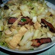 包菜、腊肉、油豆腐、姜、蒜、葱、盐、鱼露。
