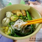 桂林米粉、鱼蛋、白菜、油、盐、香油、酱油。