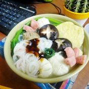 桂林米粉、香菇、丸子、香肠、鱼饼、菜心、大白菜。