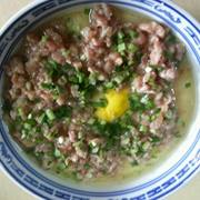 肉末、咸蛋、鸡蛋、葱花、盐、鸡精、料理酒、蠔油。