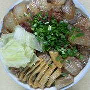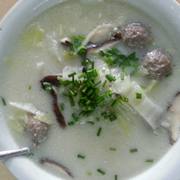黄豆、水、牛丸、白菜、香菇、葱、油、盐、糖、鸡精。