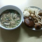金针菇、茶树菇、香菇、蘑菇、凤尾菇、骨头汤、油、姜片、盐、黄酒。