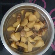 五花肉、土豆、葱、姜、大料、煮肉料包、盐、味精、十三香、料酒、糖。