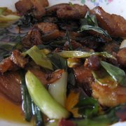 五花肉、青蒜、油、甜面酱、酱油、料酒、白糖、葱段、姜片、郫县豆瓣。