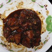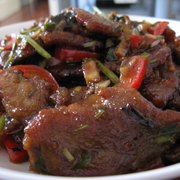 里脊肉、淀粉、蒜、葱姜、红椒、香菜、醋、糖、生抽。