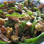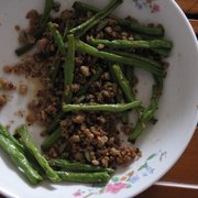 豇豆、肉糜、蒜、料酒、生抽、盐。