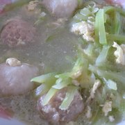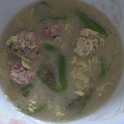 丝瓜、肉丸、鸡蛋、盐、香油。