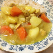 鸡腿肉、胡萝卜、土豆、洋葱、大喜大咖喱酱。