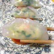 虾仁、油菜、鸡蛋、澄粉、玉米淀粉、盐、胡椒粉。