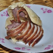 鸭腿肉、肥猪肉、发面、韭菜、生姜、盐、糖、料酒、生抽。