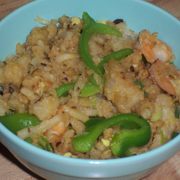 土豆、面粉、玉米面、玉米混合面、虾仁、鸡蛋、青椒、香葱、姜、老干妈辣酱、盐、白胡椒、鸡精。