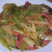 芹菜、白腐乳、辣酱、香肠、香葱、盐、淀粉、鸡精。