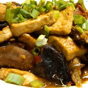 豆腐、香菇、番茄、香葱、蒜子、姜、甜面酱、豆豉朝天椒、糖、盐、鸡精。