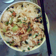 猪肠粉、榨汁后胡萝卜渣、西芹、香葱、蒜头、姜、米酒、调味料。