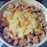 白菜、猪肉、胡萝卜、鲜葱、鲜姜、蒜子。