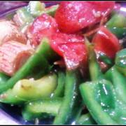 香肠、蟹棒、青椒、蒜头、蒜苗、蚝油、盐、味精。