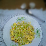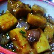 米豆腐、洋葱、葱、料酒、酱油、醋、糖、蚝油、排骨酱、盐、鸡精。