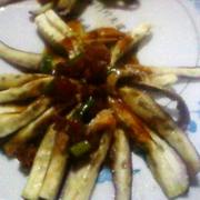 茄子、蒜头、蒜苗、葱白、酱油、料酒、糖、醋、盐、味精。