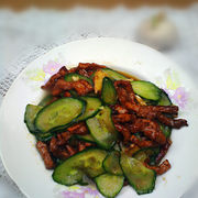 黄瓜、瘦肉、姜、蒜、生抽、老抽、料酒、白糖、醋、盐、味精、食用油、地瓜粉。