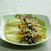 娃娃菜、皮蛋、海米、姜丝、盐。