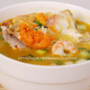 赤蟹、草鱼头、虾、剩米饭、猪里脊、香葱、姜、盐、味精、猪油。