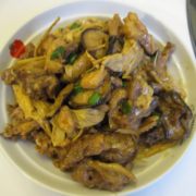 鸡肉、腐竹、香菇、姜、葱、薯粉、酱油、盐。