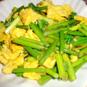 蒜苔、鸡蛋、葱、花椒、盐、油。