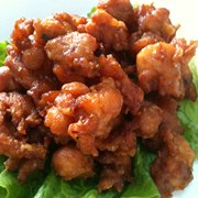 鸡腿、番薯粉、米酒、酱油、糖、葱、姜、椒盐。