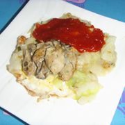 蚵仔、白菜、青葱、鸡蛋、地瓜粉(调味料A)、太白粉(调味料A)、面粉(调味料A)、水(调味料A)、盐(调味料A)、醋(调味料A)、盐(调味料B)、地瓜粉(调味料B)、玉米粉(调味料B)、糖(调味料B)、甜辣酱(调味料B)、蕃茄酱(调味料B)、肉桂粉(调味料B)、冷开水(调味料B)。