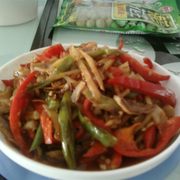 新鲜猪肚、红辣椒、尖椒、豆瓣酱、葱、子姜、大蒜、盐、糖、醋、鸡精、酱油、蚝油、花生油。