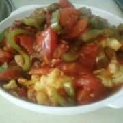 番茄、土鸡蛋、姜、水淀粉、酒、酱油、蚝油、糖、盐、香油。