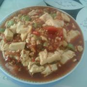 豆腐、肉末、番茄、米辣椒、豆瓣酱、盐、酱油、白糖、料酒、花椒粉、葱花、水淀粉。