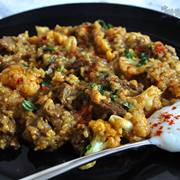 牛腩、香米、大蒜、洋葱、油、牛肉汤、花菜。