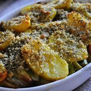 土豆、大葱、三文鱼、黄油、面包屑、奶油。
